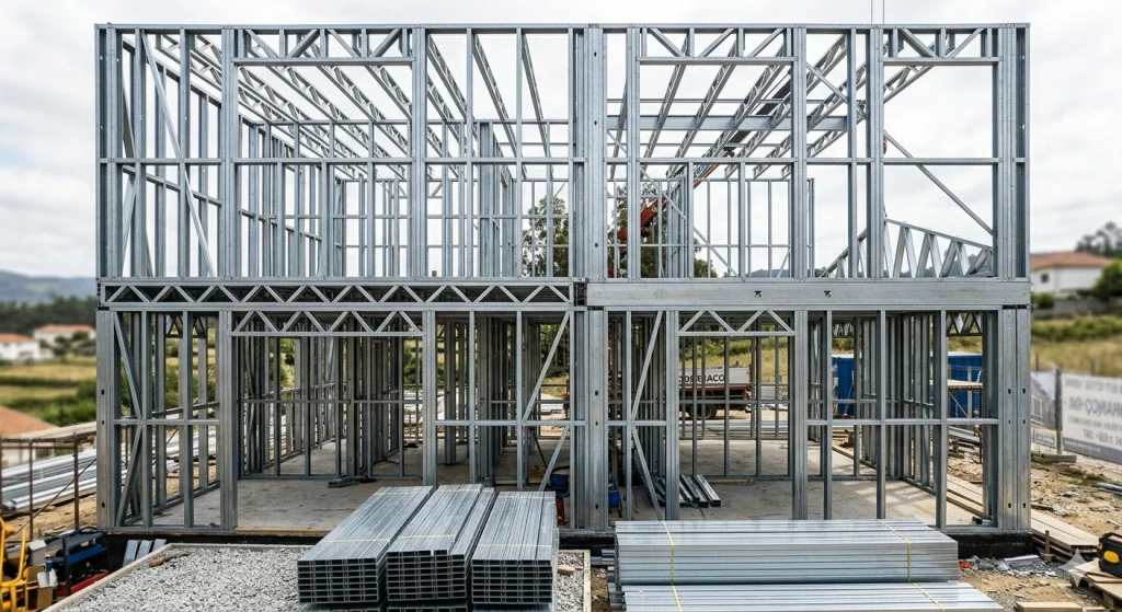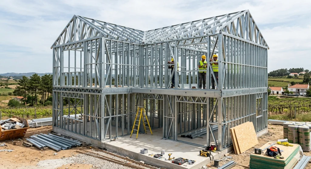 Implementamos técnicas modernas de Light Steel Framing para projetos duráveis, rápidos e sustentáveis.